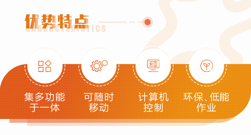 1、采用自行驱动方式,在任何地形条件下,此设备均可达到工作场地的任意位置,减少对物料的处理操作。
