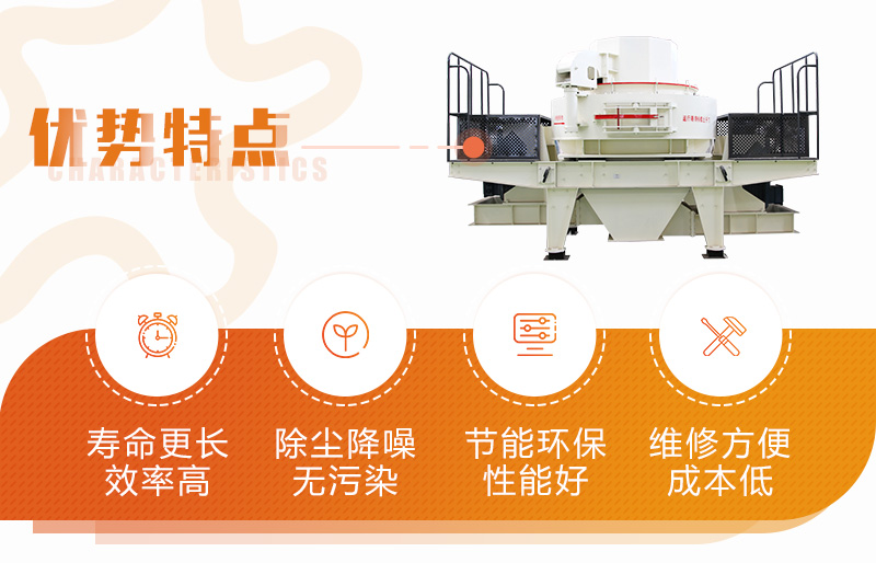 1、利用冲击能制砂,不仅效率高,而且经它处理后的砂石成品多呈立方体,级配合理,符合高标准建筑用砂;