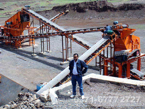 玄武岩物料从料仓出来后由振动给料机均匀的送入颚式破碎机(粗碎),然后经皮带输送机机进入反击破中二次破碎,产出后的石料被输送到振动筛中筛分,这样就在在反击破和振动筛之间形成了一个闭 路系统,在提高产量的同时,又能保证物料的破碎粒度在要求的范围之内,是一条设计比较严谨,比较完善的玄武岩砂石料破碎生产线。